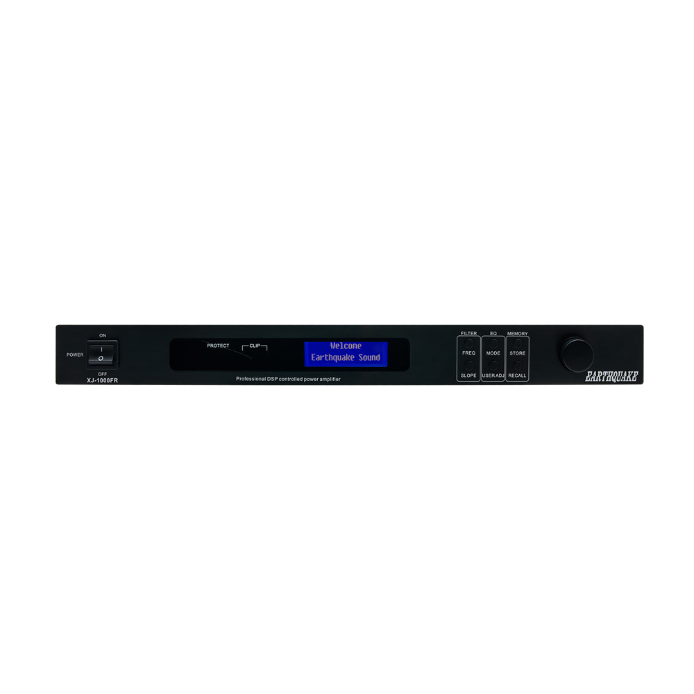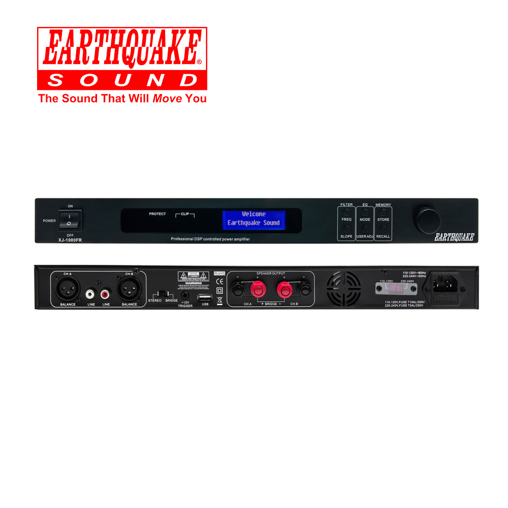 Earthquake’s XJ-1000FR is a high fidelity DSP (digital signal processing)professional amplifier. Equally suited for home and professional use, the XJ-1000FR is ideal for full range stereo reproduction and a variety of other home and studio applications.