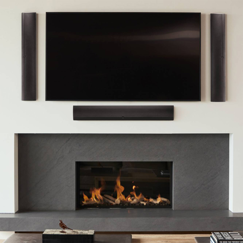 Combine Mythos LCR-85 speakers with Dymension on-wall surrounds and a Descend subwoofer for a sleek surround setup that never interferes with your décor.