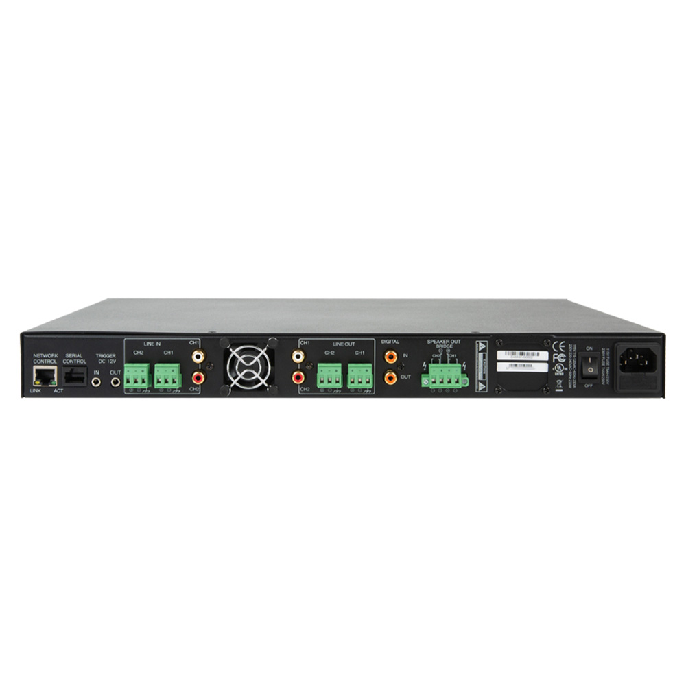This professional amplifier delivers premium performance for even the largest speaker systems. Install high-powered versatility, with two configurable output channels to support 70V, 8-ohm, and hybrid configurations (2-ohm minimum).