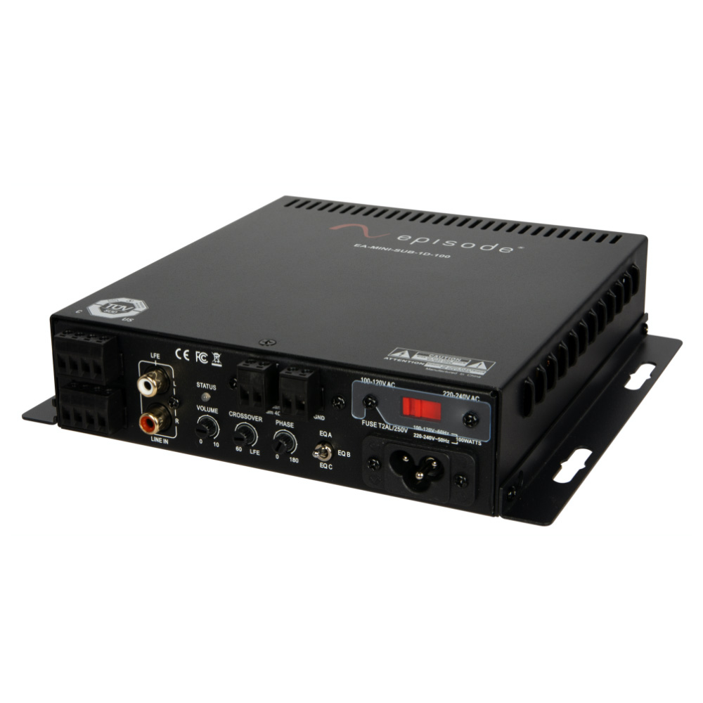 A Sub for Every Room: The Episode Digital Subwoofer Mini Amplifier features a small form factor and pairs great with Episode’s 8″ Architectural Sub, letting you put immersive bass in any room without taking up space and affecting room aesthetic.