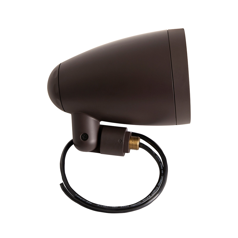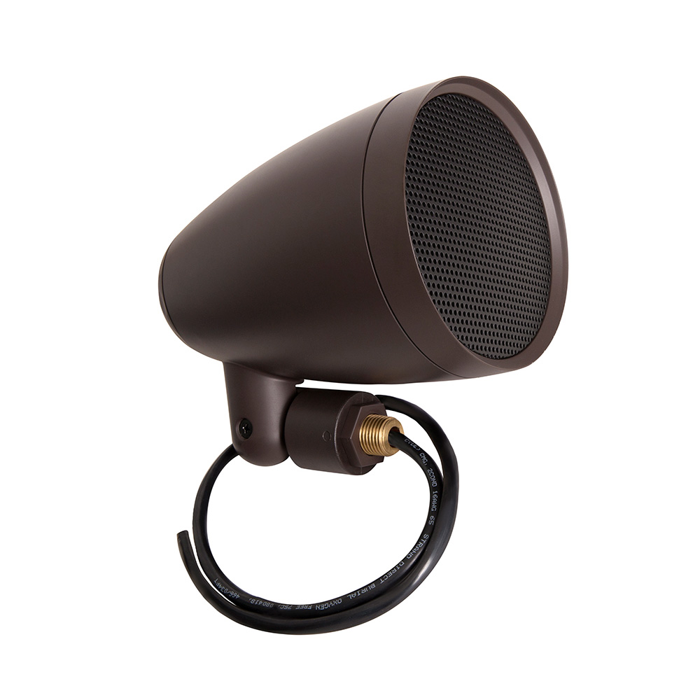 On the ground, in a tree, or underneath an eave – this speaker can be easily mounted in a variety of places for perfect coverage and performance. The ½” threaded mount is designed to work with outdoor lighting accessories, including our line of landscape speaker mounts.
