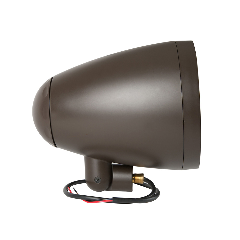 On the ground, in a tree, or underneath an eave – this speaker can be easily mounted in a variety of places for perfect coverage and performance. The ½” threaded mount is designed to work with outdoor lighting accessories, including our line of landscape speaker mounts.
