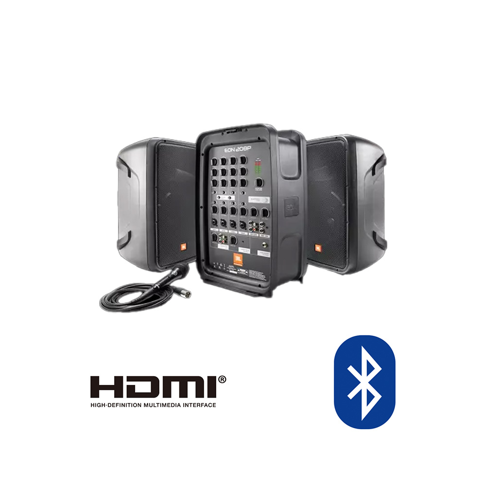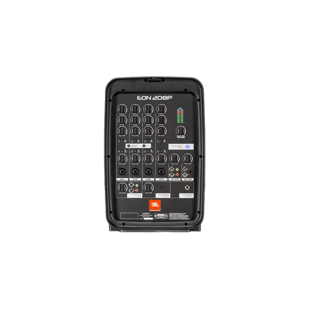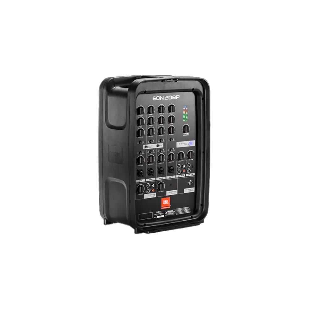 Bring legendary JBL sound quality to your stage with the EON208P all-in-one portable PA system. Featuring a convenient suitcase-style design, the EON208P makes it easy to get great sound for performances, meetings and events. The 8-channel detachable mixer provides professional connections for mics, instruments and line-level sources, while the 8” two-way stereo speakers deliver best-in-class audience coverage. Bluetooth connectivity allows you to stream audio from your mobile device. Thanks to 300 watts of power, you’ll have enough volume to be heard loud and clear. Plus, the compact and lightweight form factor makes transportation easy—you can carry the entire system with one hand.