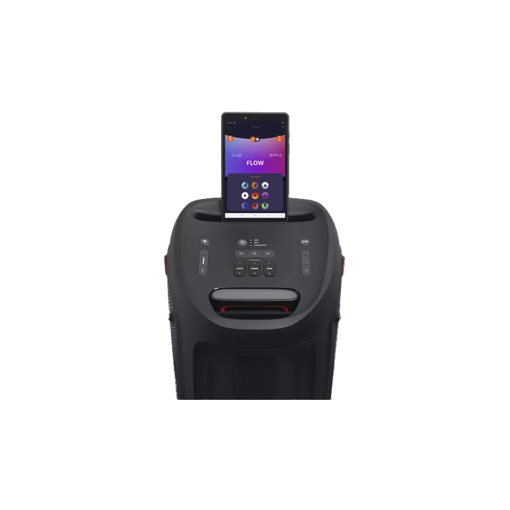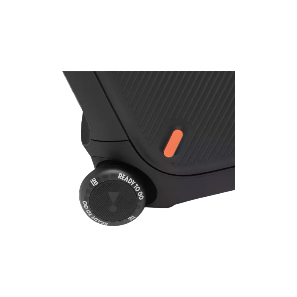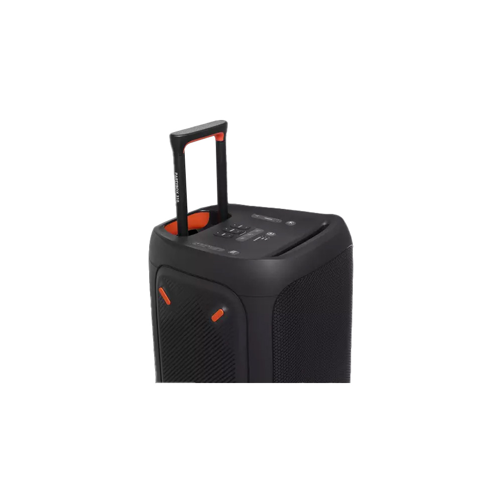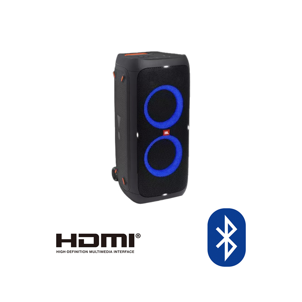 Huge sound, dazzling lights and unbelievable power set this speaker apart from the crowd. The JBL PartyBox 310 packs a full party into a transportable, splashproof sound machine like no other. Turn up your favorite playlists anywhere, from get-togethers at home to dance parties on the beach. Bring big party vibes with 240 watts of JBL Pro Sound and a synced light show that grooves to the beat. Plug in and keep the fun going all night or wheel over to the campfire and take advantage of its impressive 18-hour battery life. Start a party with the JBL PartyBox 310.