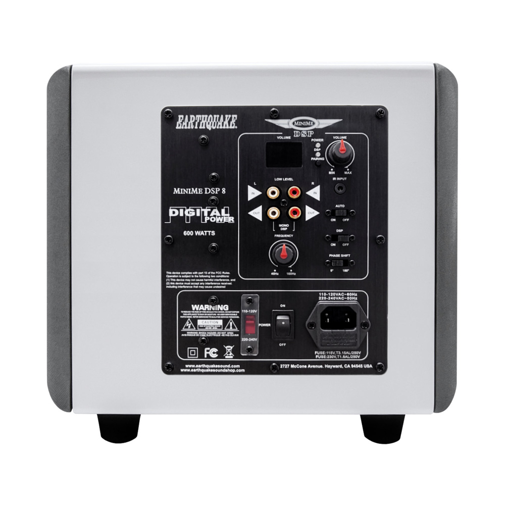 With the continued success of the MiniMe DSP series of home subwoofers, Earthquake felt that a smaller sibling was in order to help compliment the line. The all new MiniMe DSP P8 utilizes Earthquake’s unique class “D” circuitry with over 90% efficiency with the added advantage of DSP control through mobile devices. Complicated and professional room tuning is now made possible right at your finger tips through a mobile app allowing users to tune the MiniMe DSP P8 for flexible subwoofer placement in any room. Like the 10, 12, and 15 inch models, the DSP P8 offers users some of the same great performance and features like 600 watts of brute peak power output, high-EMF XLT active driver, and redesigned 8 inch mass tuned SLAPS-M8 passive radiator with increased excursion potential.
