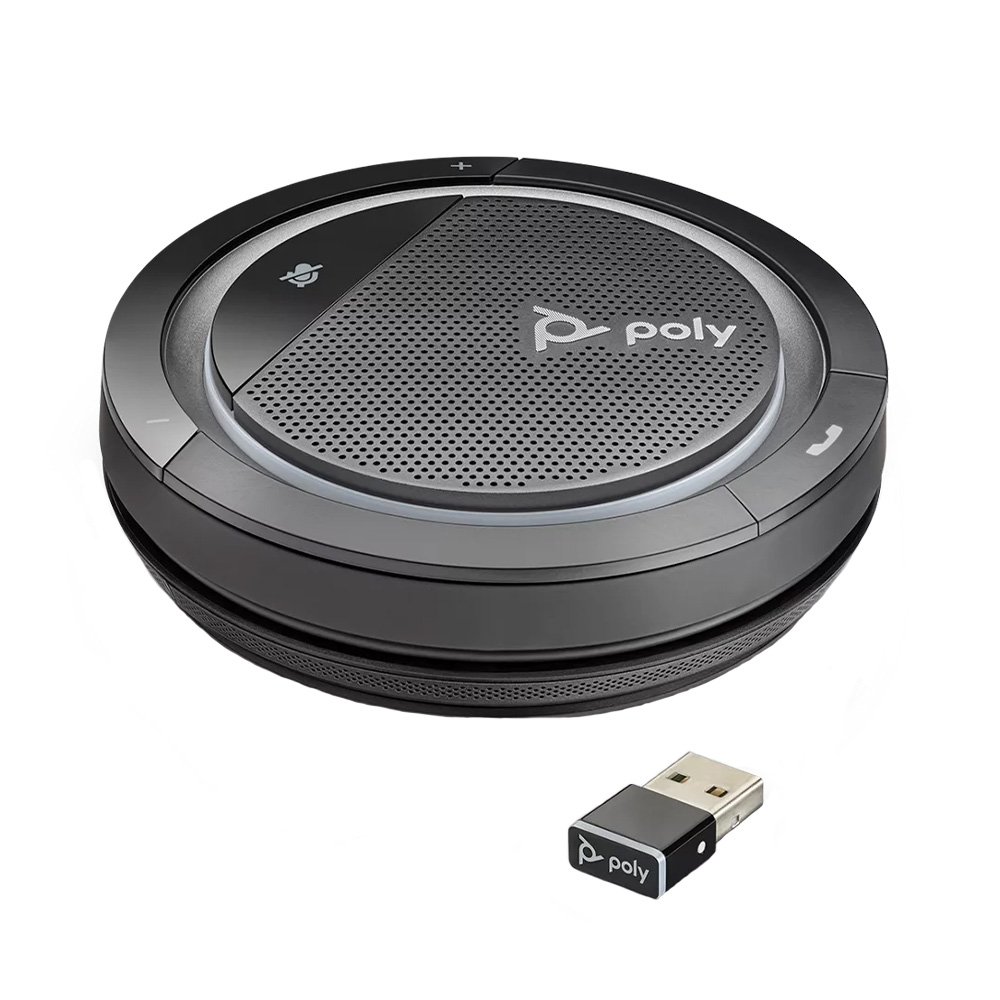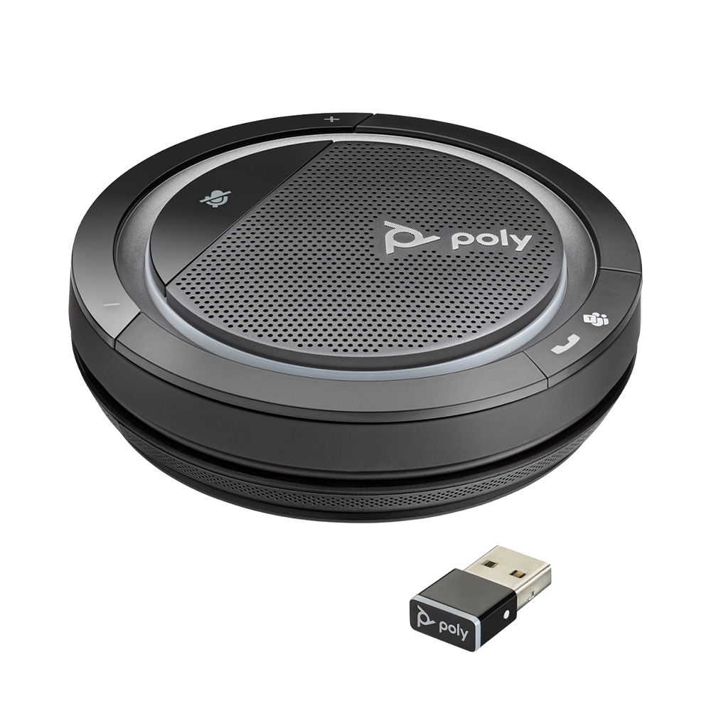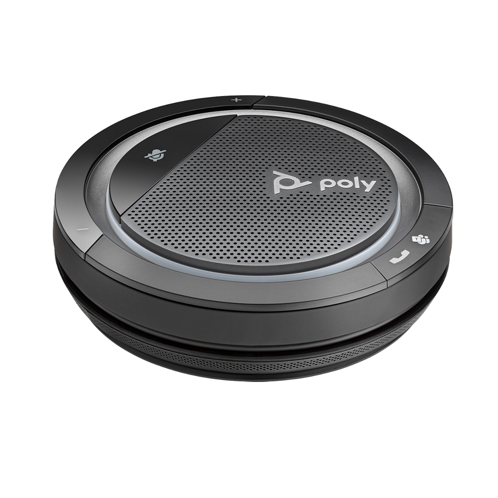 Professional audio quality goes wireless with Poly Calisto 5300. This personal, portable speakerphone has Bluetooth® and lets you sound your best wherever you’re working—at home, remote or in the office. Every conversation is clear, thanks to the wide frequency response of an amplified speaker. Everything you listen to sounds amazing, too—think video, podcasts and music. Connecting to PCs and Macs (USB-A or USB-C) is simple and easy. Want long-lasting power or corded simplicity? Just plug in. An integrated USB cable is included. And no need to trade efficiency for working remotely. Microsoft Teams application can be invoked with the touch of a button. Now that’s freedom.