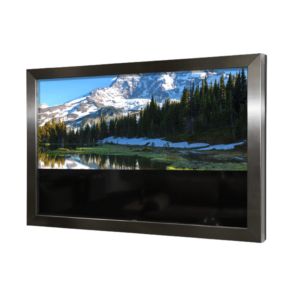 Your CoverArt comes ready to mount directly over your existing flat-panel TV screen without the need to install attachment points or drill new holes. The main structure of the Stealth CoverArt™ frame is built from aluminum, so the entire assembly is very light for its size. The frame is custom made slightly larger than the outside dimensions of the display and is designed to fit over and rest on the bezel of virtually any flat screen display. (For flat panel TVs up to 120″ wide)