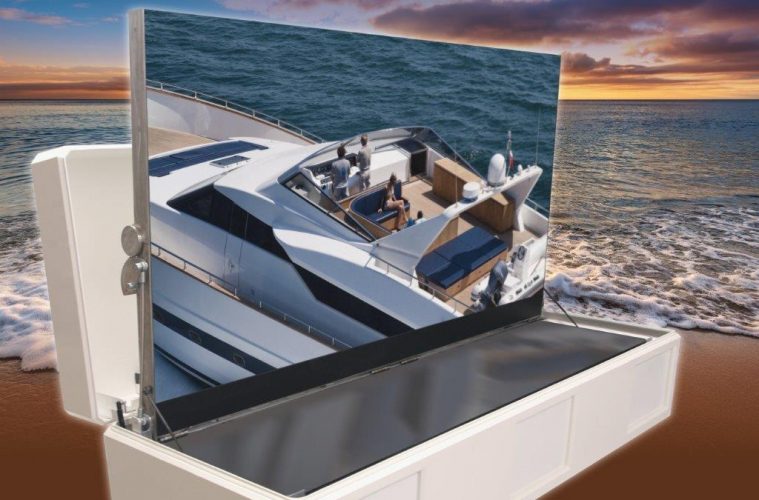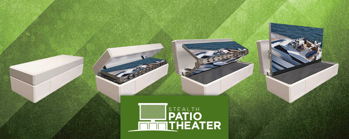 The Transformer is a revolutionary hidden outdoor theater system designed to fold away into its weatherized, fiberglass enclosure and fit discretely on a yacht or home deck. The Transformer is designed to be seen and heard with a daylight viewable LED screen and Stealth Acoustics’ award-winning outdoor speakers. With all electronics housed within, the Transformer can be a fixed or mobile solution.