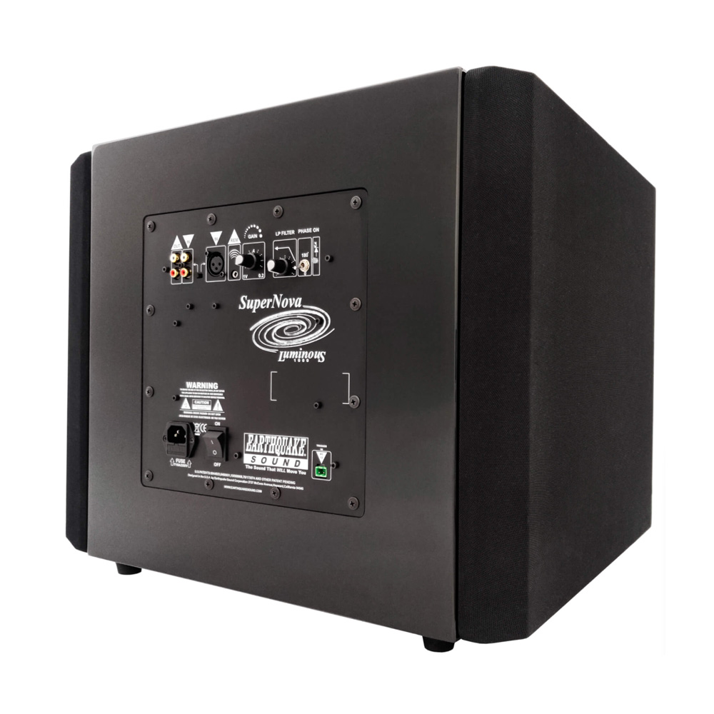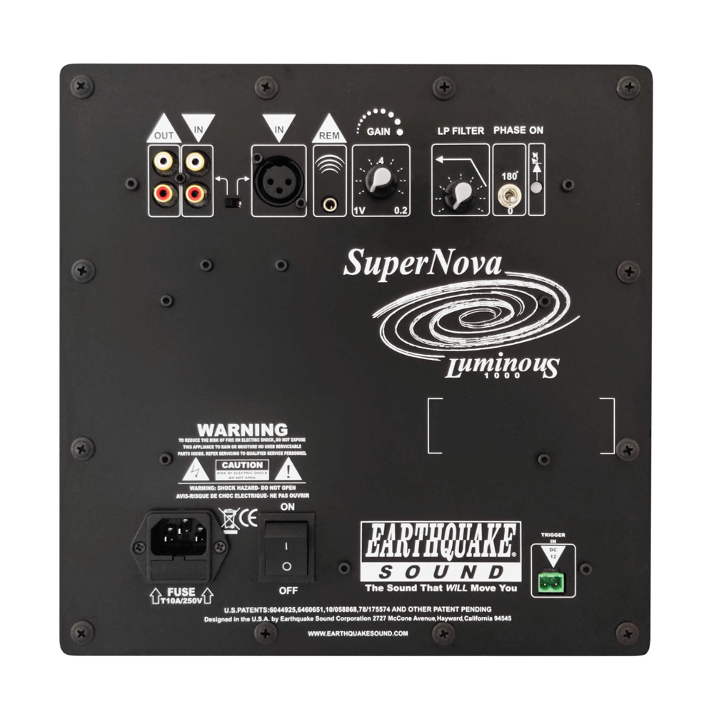 When Earthquake Sound Corporation lunched the MK series of powered subwoofers, it immediately put home theater subwoofers on steroids. While THX 1 and 2 required to have 35Hz at 105dB, the MK series laughed at those numbers. As tested by many, Earthquake’s MKIV 12 beat all subwoofers on the market (measured by Richard Hardesty of Widescreen Review, Dr. John E. Johnson of Secrets of Home Theater and High Fidelity, and Steven Stone’s Stereophile Guide to Home Theater). Earthquake Sound is pleased to announce the newly released Supernova LU-12 and LU-15 that further expands on the Supernova series of home audio subwoofers. Powered by the Luminous 1000 amplifier, these subwoofers pack power, features, and performance in an extremely compact enclosure with a luxurious black piano finish.