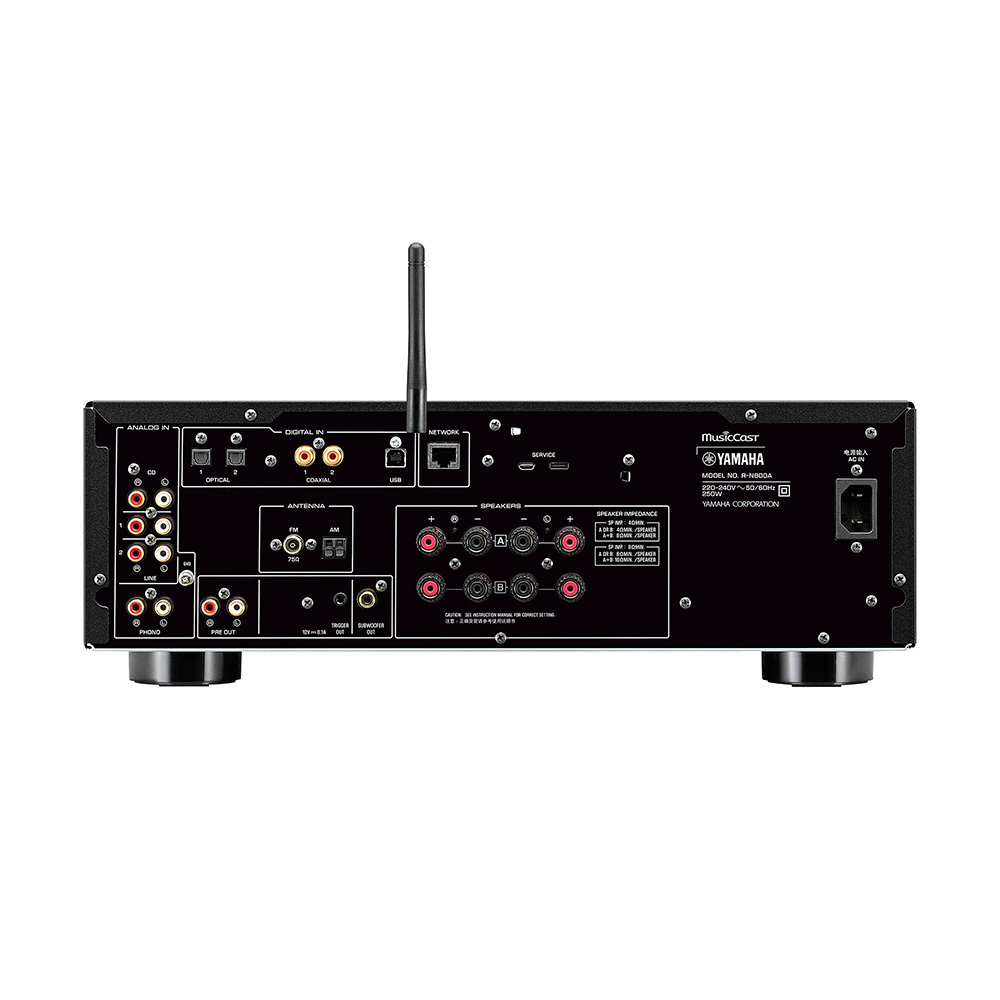 The R-N800A is equipped with Yamaha’s original MusicCast network system. Moreover, it is compatible with a variety of streaming services such as Amazon Music HD and Spotify, letting you fully enjoy exceptionally high-quality sound unique to today’s high-resolution and lossless sound sources, with complete fidelity. You can also use it to stream Apple Music with Airplay 2. And the MusicCast system lets you easily listen to music anywhere in your home by linking various MusicCast devices with just one app on your smart device.