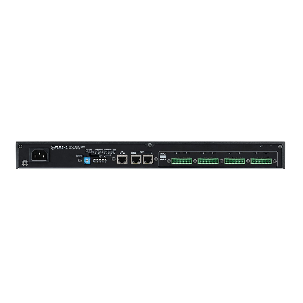 EXi8 input expanders convert analog microphone/line audio to digital and transmits the signal using Yamaha’s YDIF format. The EXi8’s preamps can be controlled remotely from MTX/MRX series processor via Ethernet cable.