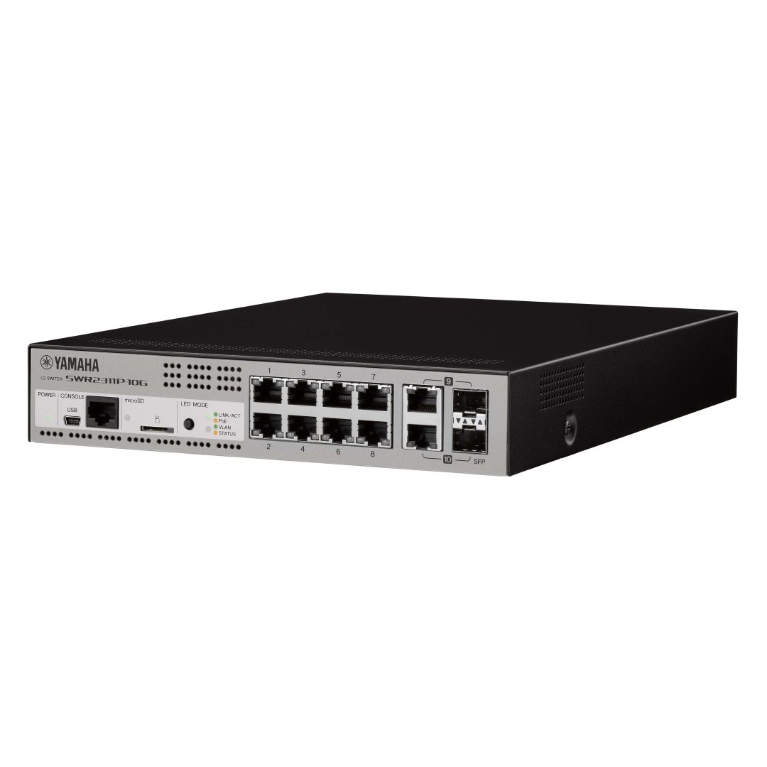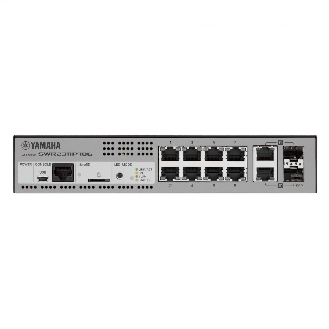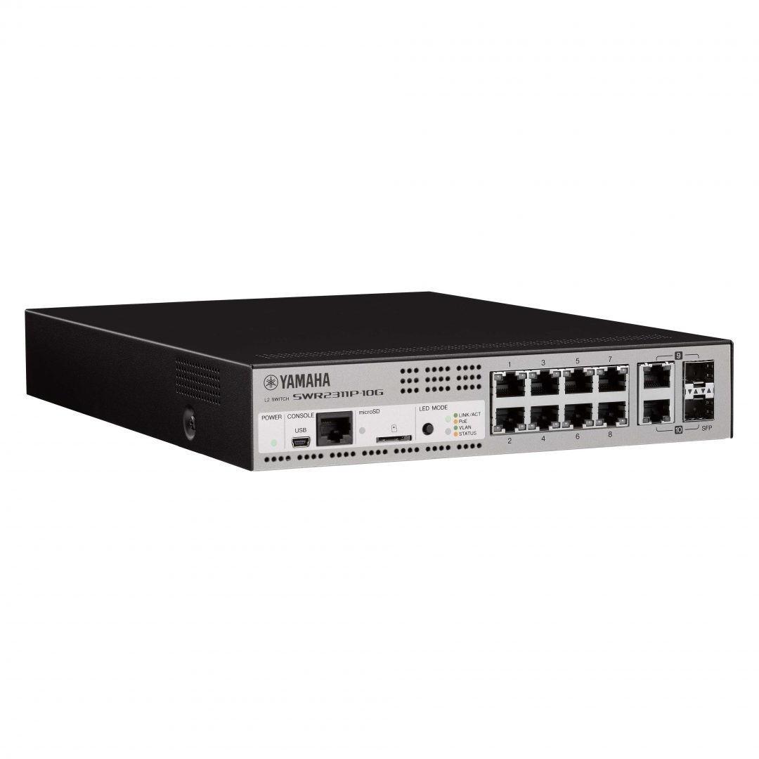 SWR2311P-10G supports the “LAN Map Light” visualization function by WebGUI*. Switch settings can be made on graphical screens, not by command entry. By utilizing WebGUI, it has an extensive monitoring functions such as POE device monitoring setting, restart of PoE device in case of device trouble, setting of mail to notify errors etc. With Yamaha’s proprietary communication protocol “L2MS”, you can check the IP addresses of the Yamaha network devices such as the SWR2311P-10G, SWR2100P series, and SWP1 and the network devices connected to them. It can be used widely from system design to maintenance.