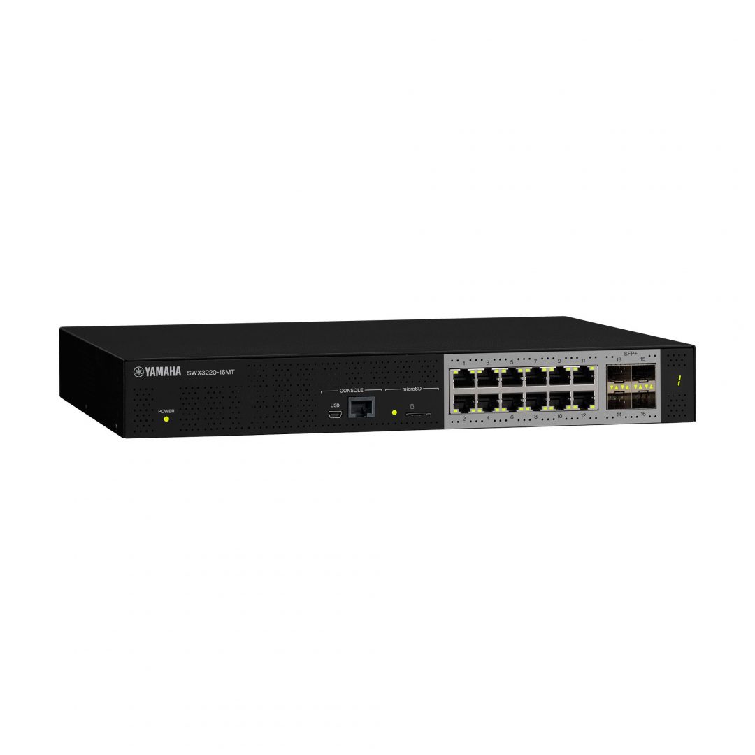 The LAN ports of the SWX2320-16MT and SWX3220-16MT support five speeds (100M/1G/2.5G/5G/10Gbps) and optimize network speed as appropriate to the devices connected. As demand for speed and capacity grows because of rising numbers of wireless devices, greater audiovisual communication traffic, and increasing access to large files, faster LAN switches allow smooth handling of loads that would congest 1 Gbps networks. Networks that already use Cat5e or Cat6 cables can be accelerated to up to 5 Gbps by replacing their GbE switches with these new models. 10 Gbps networks can be created by using Cat6A cables with these models.