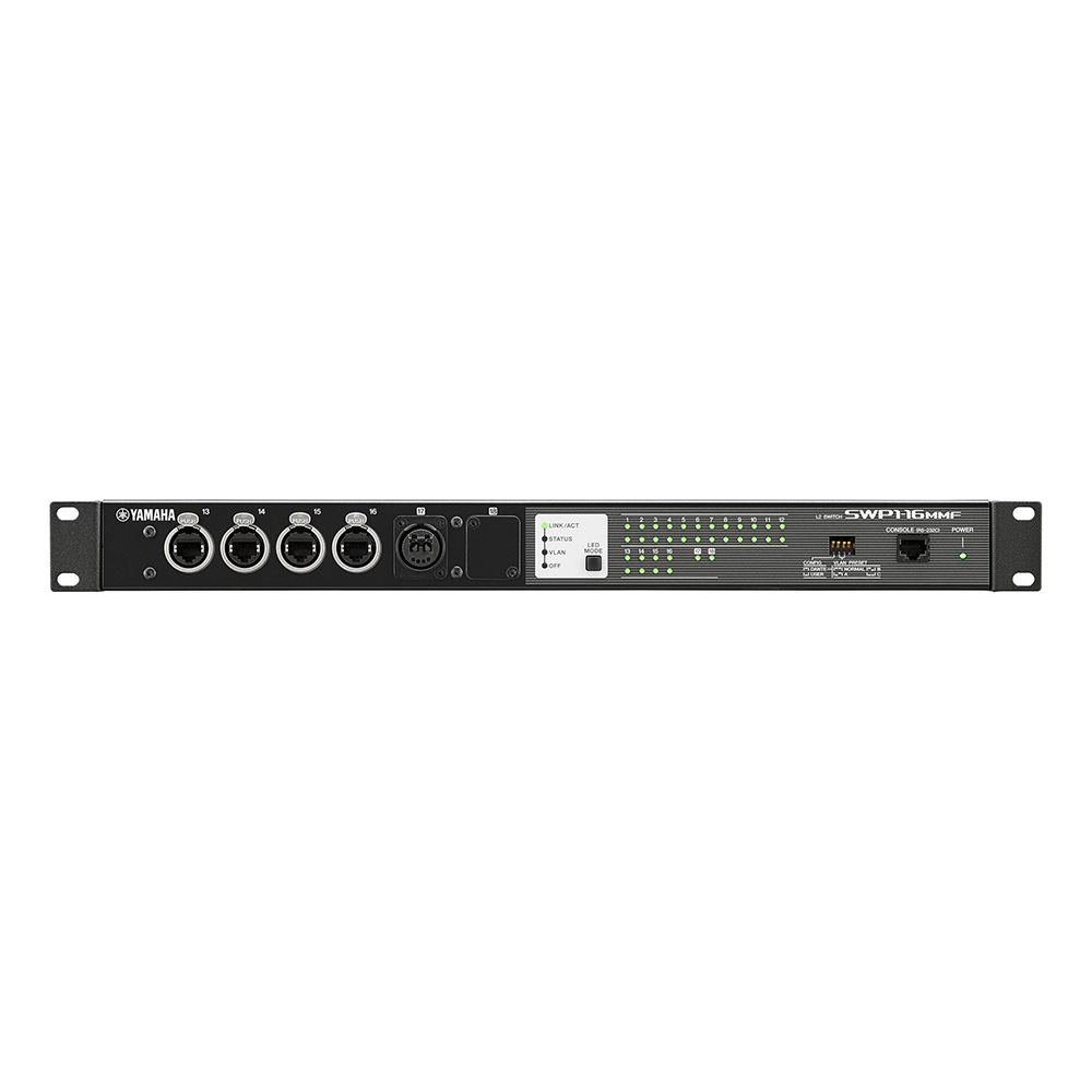 The SWP1 series L2 switch is ideal for Dante network systems. It features 12 etherCON ports, four RJ45 ports, one opticalCON port, and an option slot for one more port as needed.