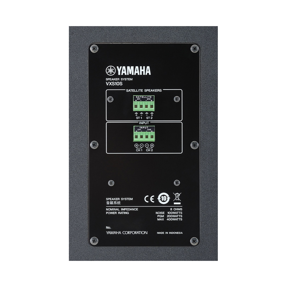 Luxurious bass response can enhance musical presence and realism in a big way. Yamaha offers the VXS3S for smoothly extended low-end power, and the VXS10S and VXS10ST for applications that require maximum bass impact. Choose the model that best suits the size of the system and the full-range speakers used.